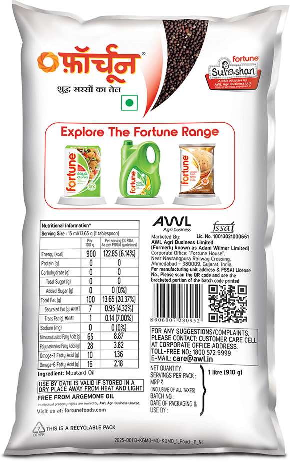 Fortune Mustard Oil 1 L (ସୋରିଷ ତେଲ)