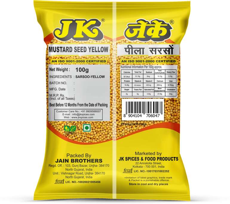 JK Yellow Mustard Seeds 100 g (ହଳଦିଆ ସୋରିଷ)