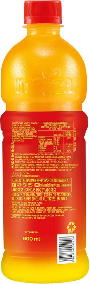 ମାଜା ହେଉଛି ଭାରତର ସବୁଠାରୁ ପ୍ରିୟ ଆମ୍ବ ପାନୀୟ, ଯାହା ପ୍ରକୃତ ଆମ୍ବର ରସରୁ ପ୍ରସ୍ତୁତ। ଏହା ଆପଣଙ୍କୁ ବର୍ଷର ଯେକୌଣସି ସମୟରେ ପାଚିଲା ଆମ୍ବର ମିଠା ଏବଂ ସୁଆଦିଆ ଅନୁଭୂତି ପ୍ରଦାନ କରିଥାଏ। ଏହାର ମନୋରମ ସ୍ୱାଦ ପାଇଁ ଏହା ପିଲାଠାରୁ ବଡ଼ ସମସ୍ତଙ୍କର ପ୍ରଥମ ପସନ୍ଦ।